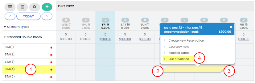 Bu yöntem, belirli odaları/yatakları engellemeni sağlar ve takvimde Kırmızı bir çizgi olarak gösterilir.