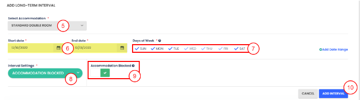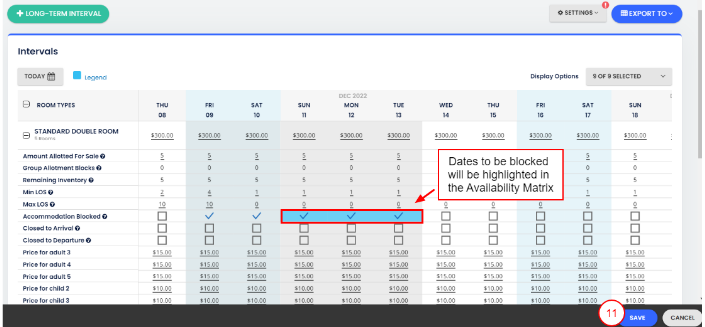 - Aralık Ayarlarında, Konaklama Bloke Edildi seçeneğini seç
