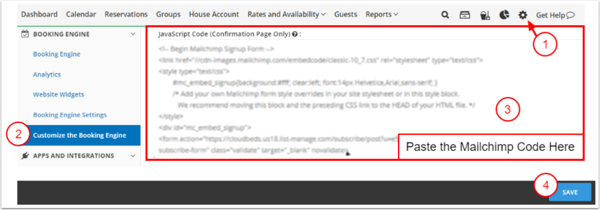 - Hesap oluşturulduktan sonra, Rezervasyon Motoru'na Mailchimp'i gömme işlemi için aşağıdaki adımları takip et.