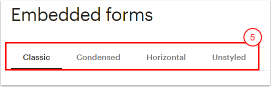 - Bir form türü seç (Classic, Condensed, Horizontal veya Unstyled) ve Form Seçeneklerini özelleştir