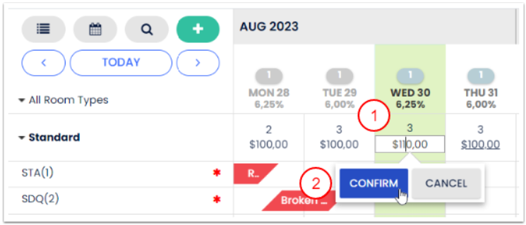 Fiyatlarını takvimden güncelleyebilirsin: