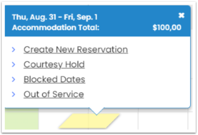 Müsaitlik sadece yeni rezervasyon veya blok oluşturarak takvimde değiştirilebilir: