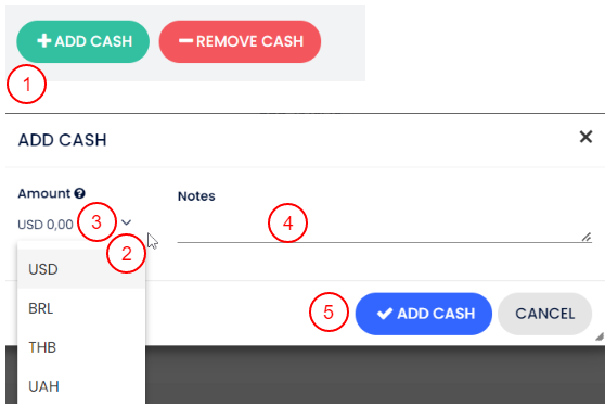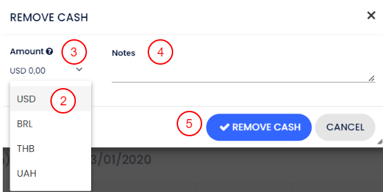 Diğer para birimlerinde nakit ekleyebildiğin gibi, kasa çekmecesinden diğer para birimlerinde nakit de kaldırabilirsin: