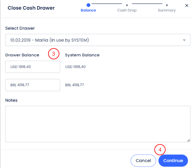 Bir kasa çekmecesini kapatırken, her para birimindeki mevcut bakiyeyi girebilirsin. Aşağıdaki adımları sırayla kontrol et: