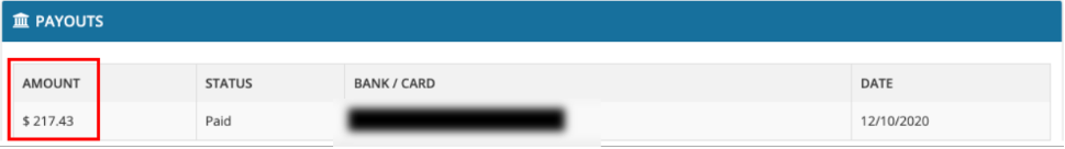 • 10 Aralık ödeme raporundaki Ödeme tutarı 217,43$'dır; bu, 8 Aralık satışları için paranın banka hesabına tahsis edildiğini gösterir.