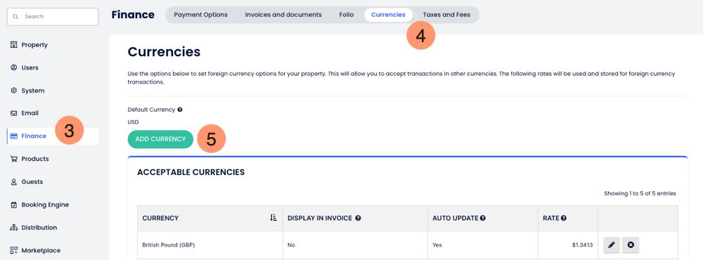 • Tesisin için kabul edilebilir dövizleri kurduktan sonra, farklı para birimleriyle işlem ekleyebileceksin;
