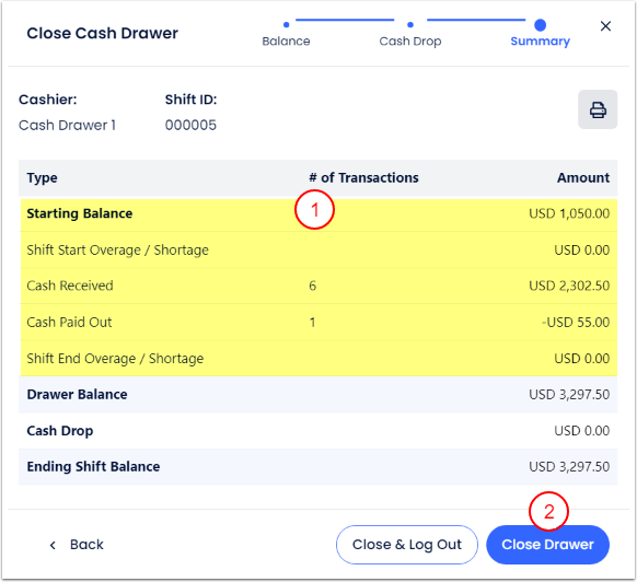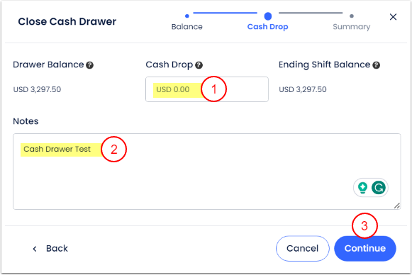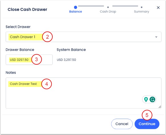 - Kasa Bakiyesi: Bu, vardiya sonunda herhangi bir çekim yapılmadan önce çekmecedeki mevcut nakit tutarıdır. Kullanıcı kasa bakiyesini ekledikten sonra, sistem sistem bakiyesini gösterecektir (normalde kasa ve sistem bakiyelerinin eşleşmesi gerekir)
