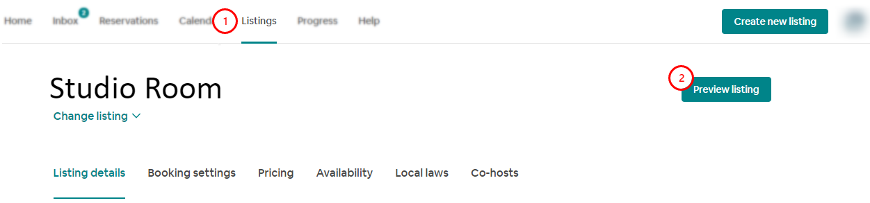 Airbnb listelemesini, fiyatlarını ve müsaitliğini (misafirin göreceği şekilde) önizlemek için aşağıdaki adımları takip et: