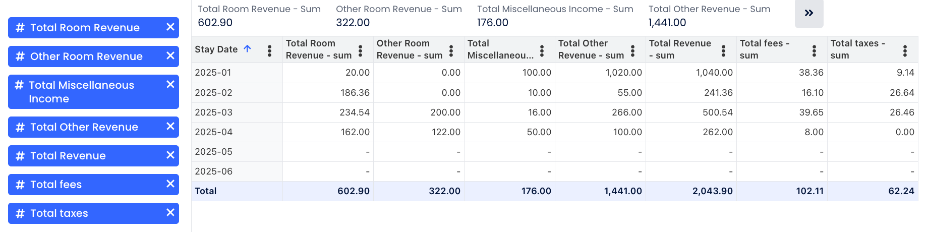 - Oda Geliri Tanımı Güncellendi: Oda Geliri artık iptal ücretleri ile hem dahil hem de hariç vergiler ve ücretleri kapsamamaktadır.