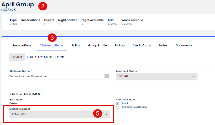 - Bir kontenjan bloğuna bağlı rezervasyonlar, Grup Kontenjan Bloğunda ayarlanan pazar segmentini devralır.