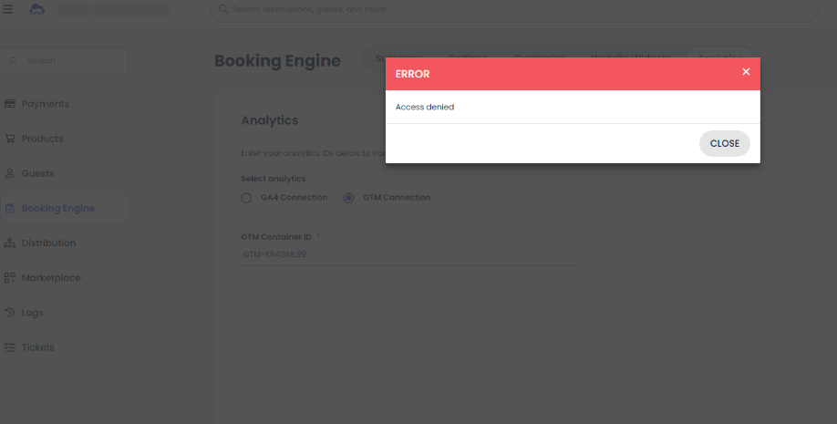GA4, GTM veya diğer izleme piksellerini Rezervasyon Motoru’nda başarıyla kaydedebilmek için rolünün hem Tesis Profili hem de Rezervasyon Motoru izinlerini içermesi gerekir. Değişiklikleri kaydedemiyorsan, tesis yöneticinden izinlerini gözden geçirmesini iste.