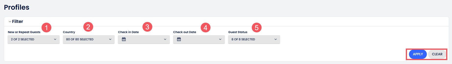 - Tüm ilgili filtreleri seçtikten sonra, seçilen kriterlere uyan misafirleri göstermek için Uygula butonuna tıkla.