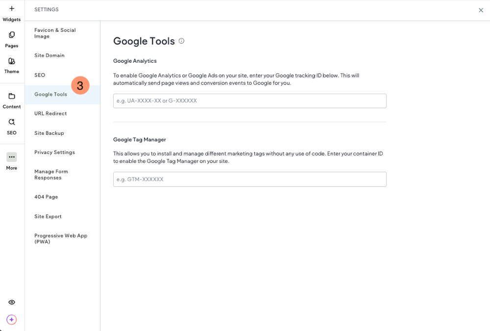 Google Araçları bölümü, Google'ın Global Site Etiketi (gtag.js) aracılığıyla birkaç Google'a ait takip teknolojisinin entegrasyonunu destekler. Aşağıdaki tesisler için kimliğini ekleyebilirsin: