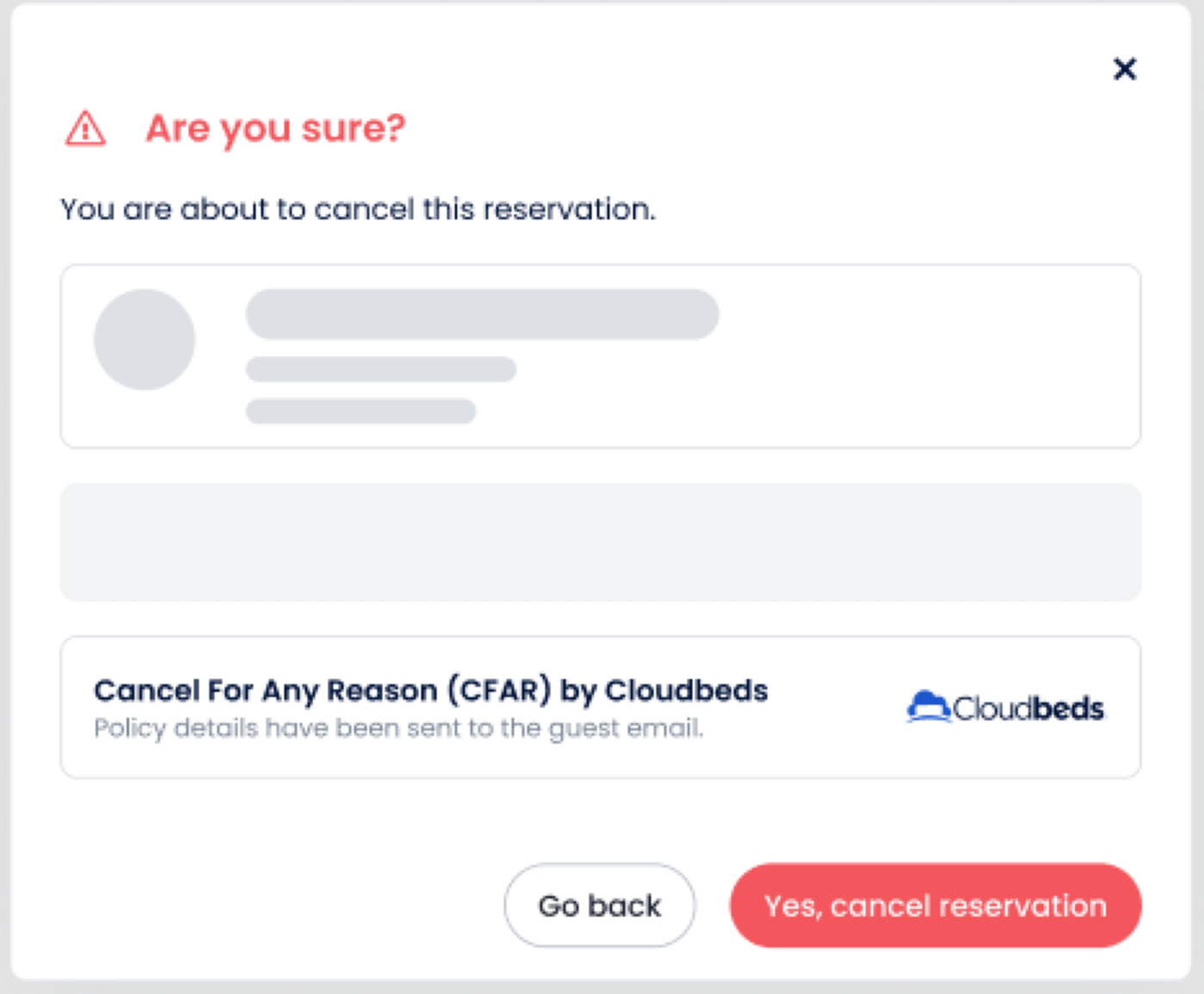 - Bir misafir, Herhangi Bir Nedenden İptal koruması olan bir rezervasyonu iptal etmek için otelle iletişime geçerse, otel personeli rezervasyon durumunu "İptal edildi" olarak değiştirerek Cloudbeds içinde rezervasyonu her zamanki gibi iptal etmelidir. Otelin tarafında başka bir işlem yapılmasına gerek yoktur.