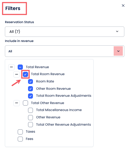 - Hangi gelir bileşenlerinin dahil edileceğini seçerek ADR (Ortalama Günlük Fiyat) ve ABR (Ortalama Yatak Fiyatı) değerlerini özelleştir.