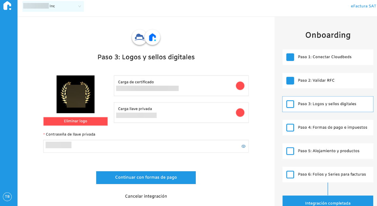 Şirket logo, RFC sertifikası, RFC özel anahtarı ve özel anahtarın şifresini yükleyin.