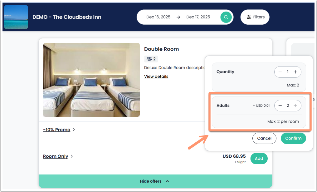 - Bu özelleştirme yalnızca Booking Engine Plus ile uyumludur.