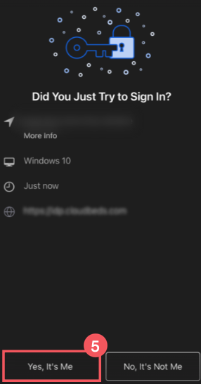 - Normal Okta Verify yönteminle (push veya kod) Cloudbeds PMS hesabına giriş yap.