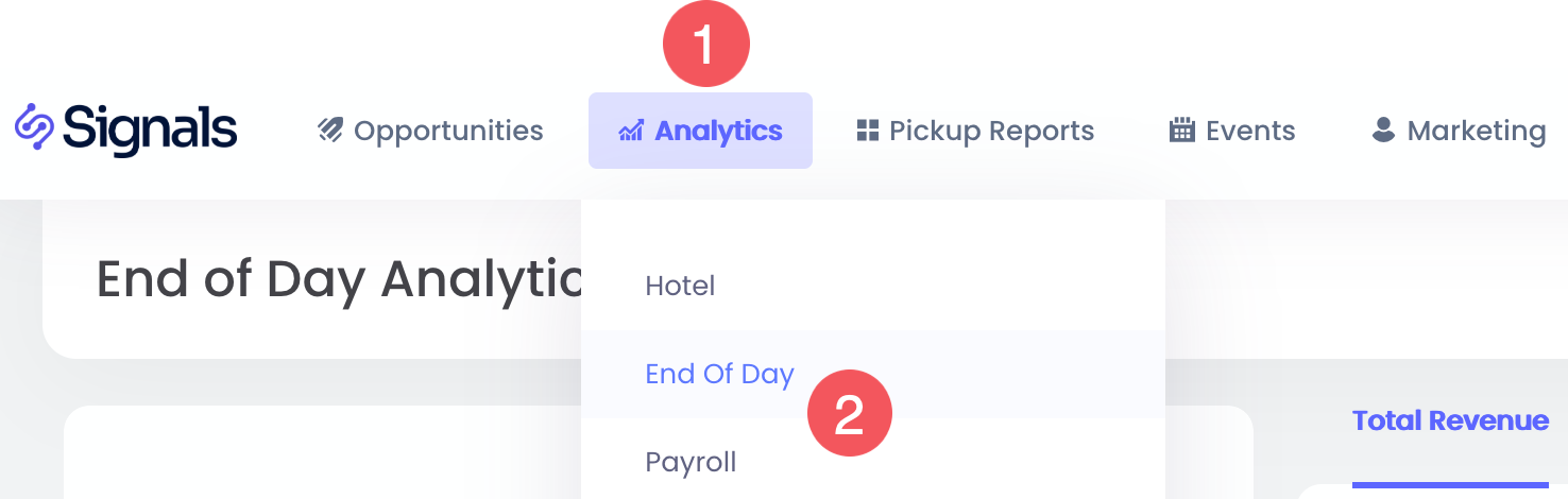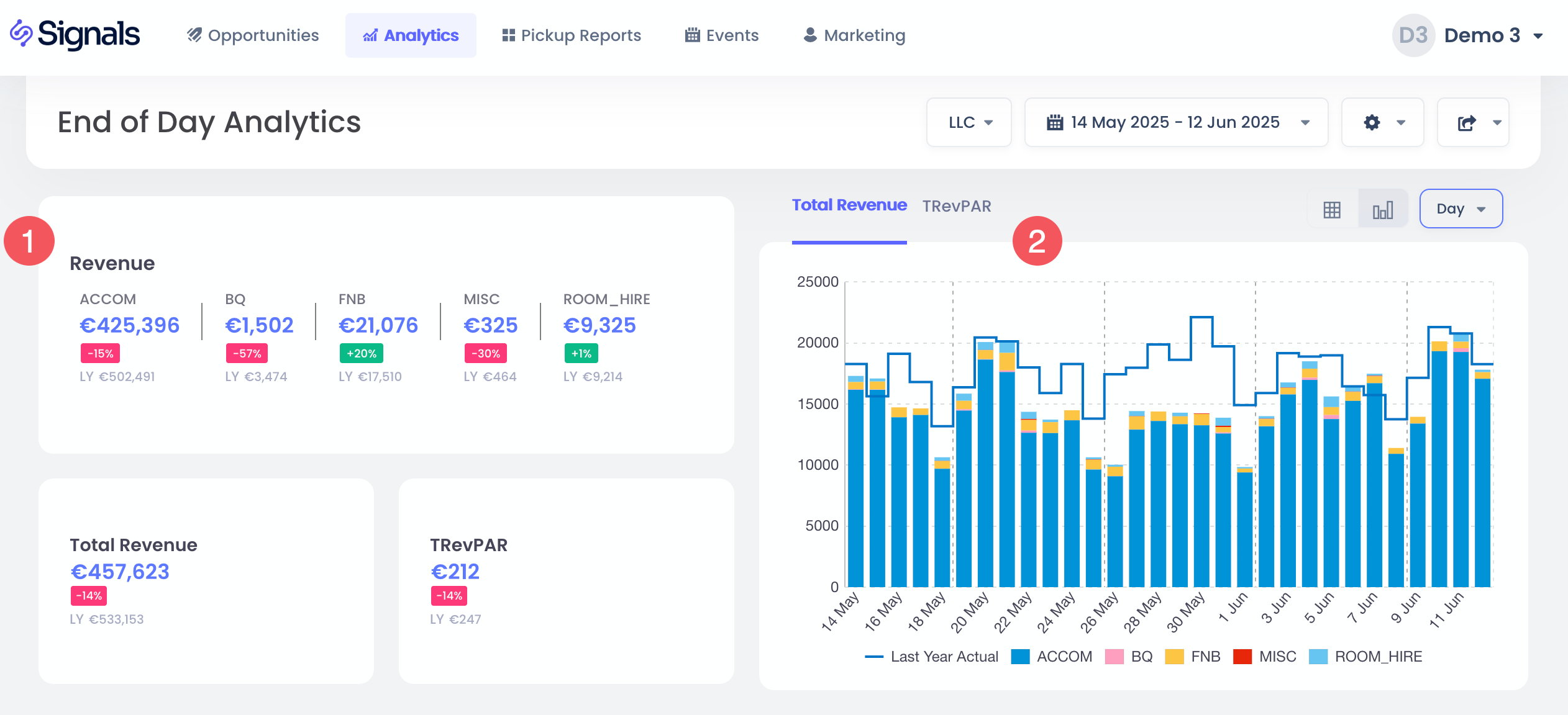 - Tarih ve gelir grubu bazında performansı gösteren "Toplam Gelir ve TRevPar" grafiklerine göz at.