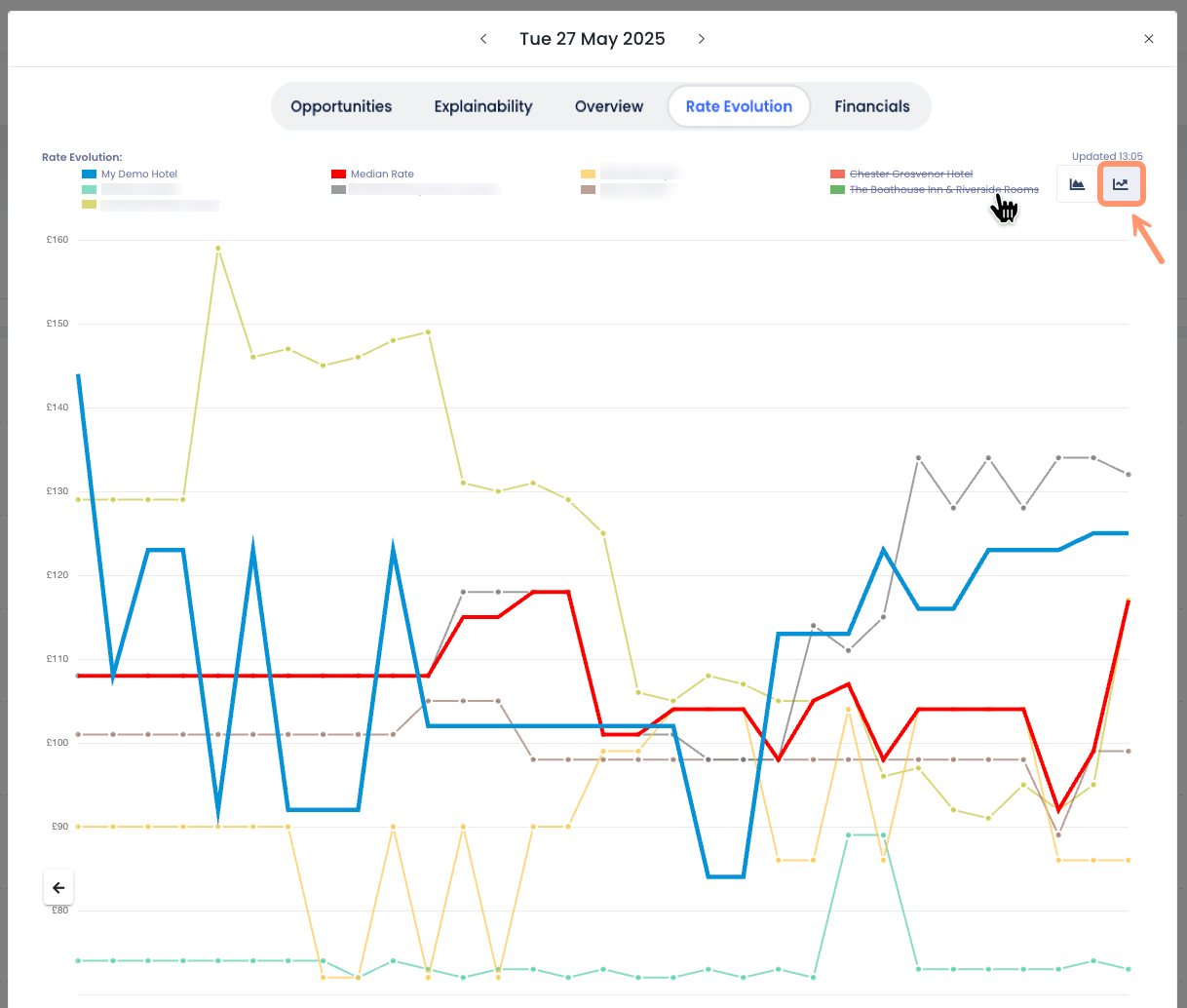 Bu grafiği, tesisindeki ve pazardaki fiyat düşüşlerini, artışlarını veya istikrarı tespit etmek ve önerilen fiyatın mevcut dinamiklerle uyumlu olup olmadığına karar vermek için kullanabilirsin.