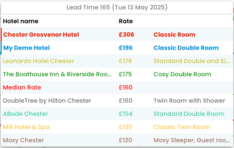 Ayrıca, belirli bir lead-in gününe ait daha fazla detayı görmek için bir noktaya fareyle üzerine gelerek o anki rakip fiyat dökümünü inceleyebilirsin: