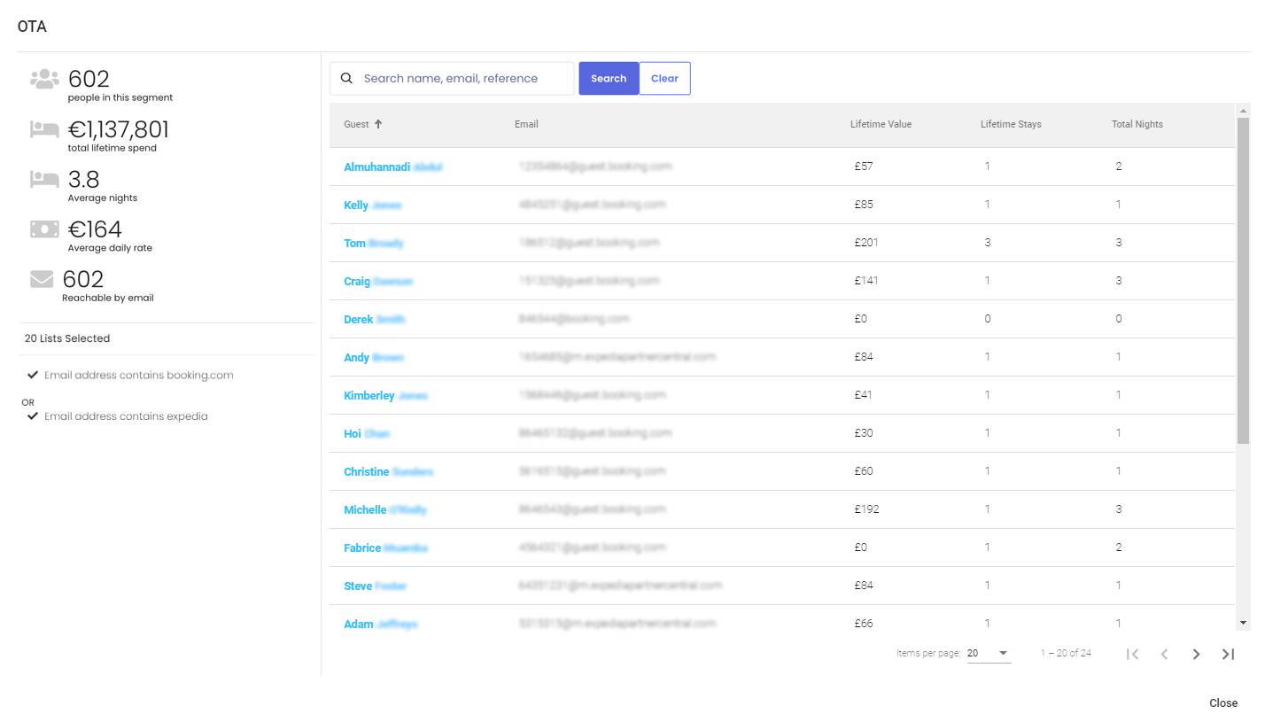 Bir segmentteki kişileri görüntülemek için Pazarlama sekmesine git, ardından Misafirler ve Segmentler seçeneğini seç ve Segmentler bölümüne tıkla.