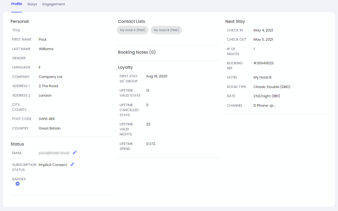 Bu bölümde misafirin adı, dili, adresi ve şirket detayları yer alır.