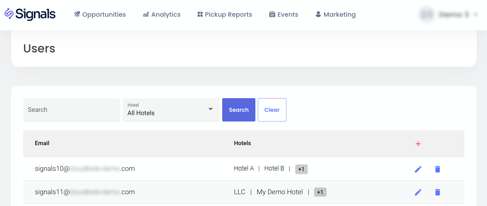 Buna tıklamak, otellerine erişimi atanan tüm kullanıcıların listesini açar