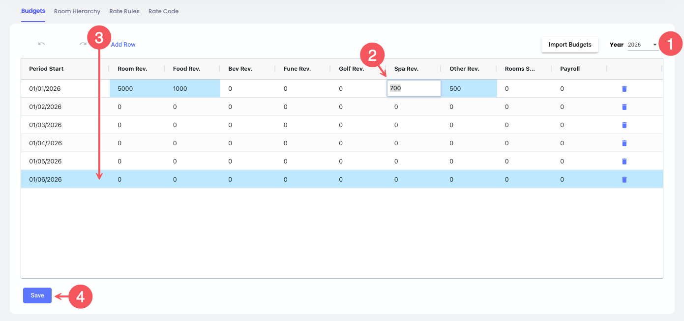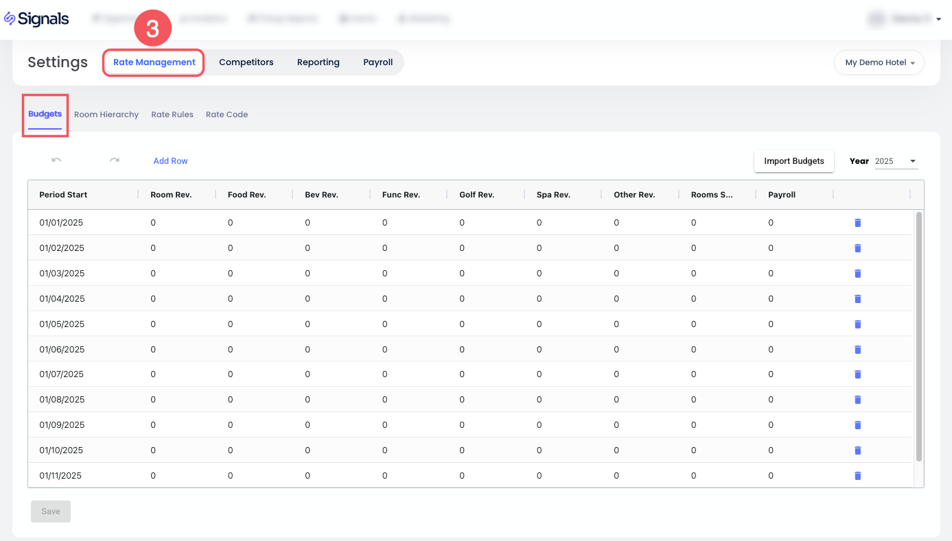 Revenue Intelligence içinde Bütçeleri tesisinizin hedeflerine karşı performansı takip etmek için özelleştirebilirsin. Bütçeler, analizler ve fırsatlar raporlamasında kullanılır; böylece farklı gelir akışlarındaki başarıyı ölçmene yardımcı olur.