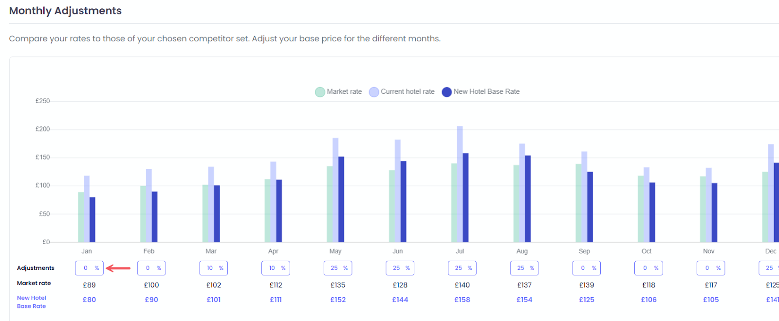 Fiyat Kuralları, otelinin “normal” piyasa konumlandırmasını belirlemene olanak tanıyan güçlü yeni bir bölümdür. Koşullar hedefteyken net bir başlangıç fiyatı sunar; optimizasyon arkasından bu taban fiyat etrafında çalışır.