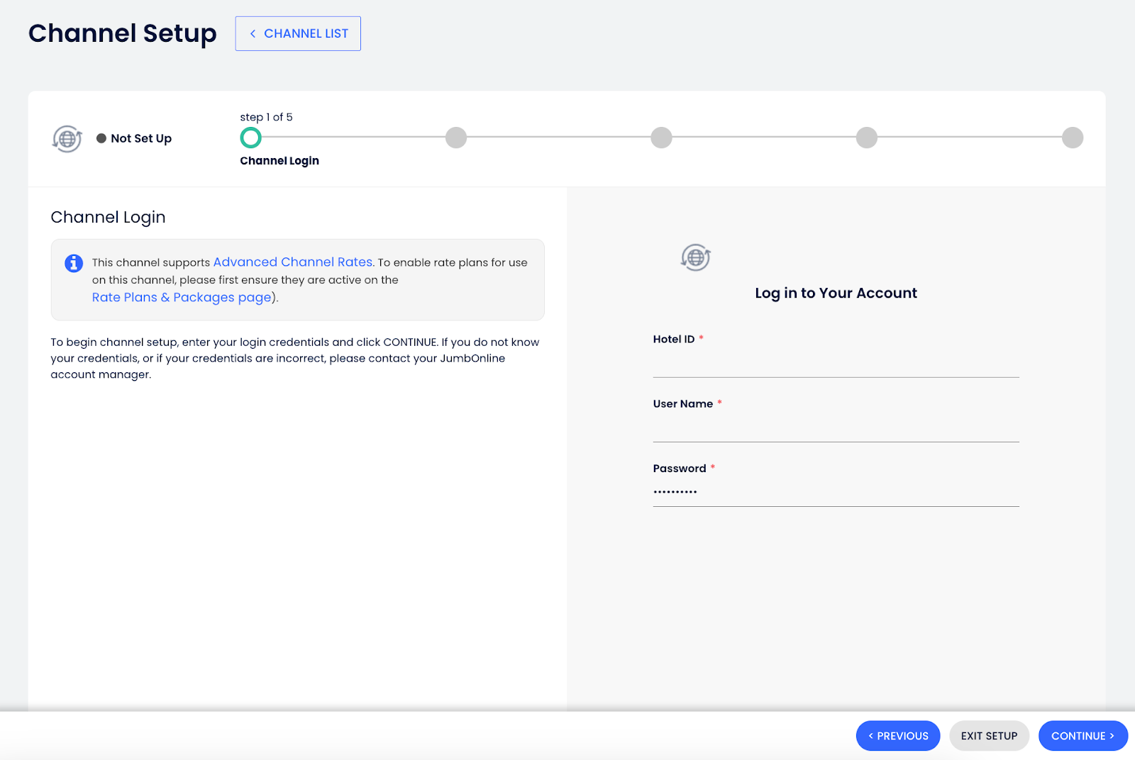 - Otel IDnı, Kullanıcı adını ve Parolayı gir. Ardından Devam Et butonuna tıkla.