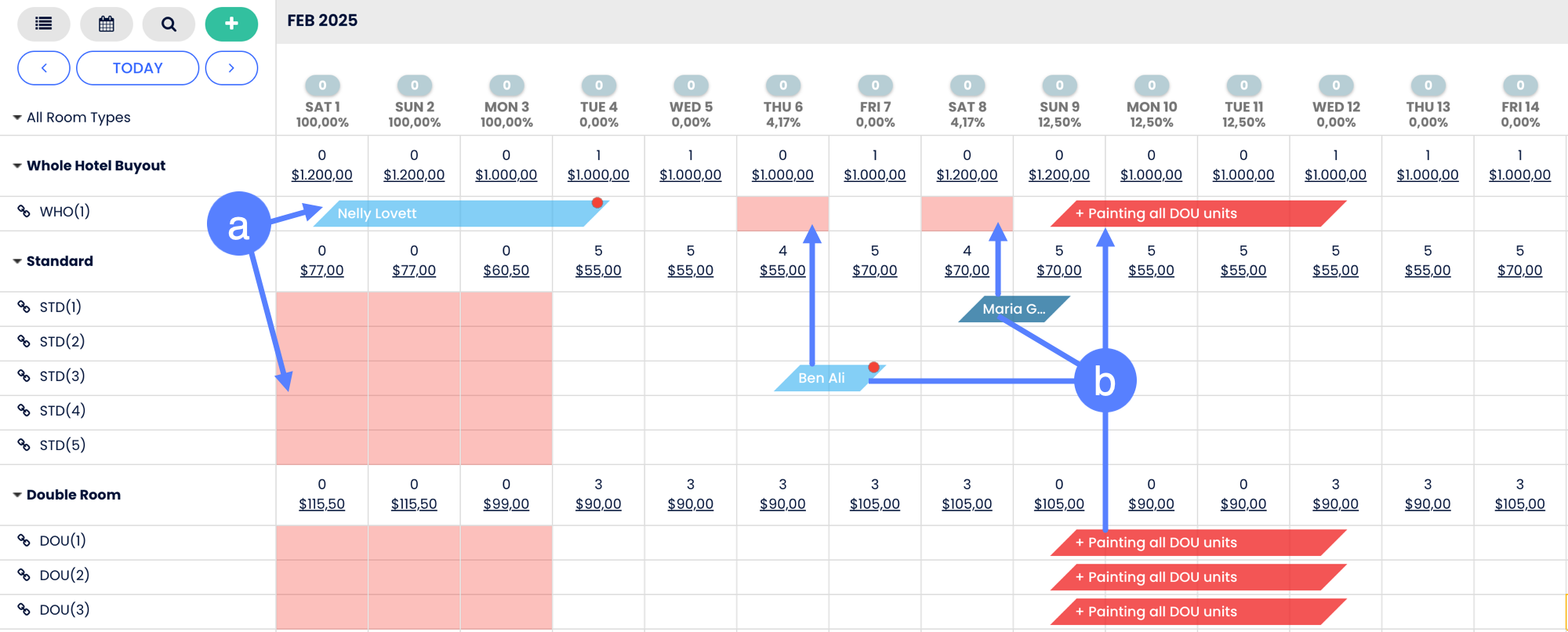 - Tüm Birinci Katı satarsan, bağlı olan üç standart oda da engellenir.
