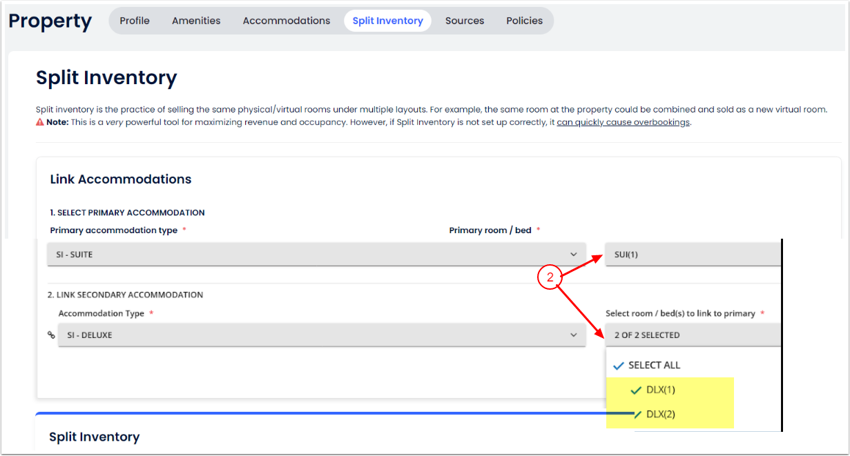 - Süit odayu birincil konaklama olarak seç ve iki Deluxe odayu bir bağlantılı birim haline getirmek için bağla. Ardından Kaydet'e tıkla.