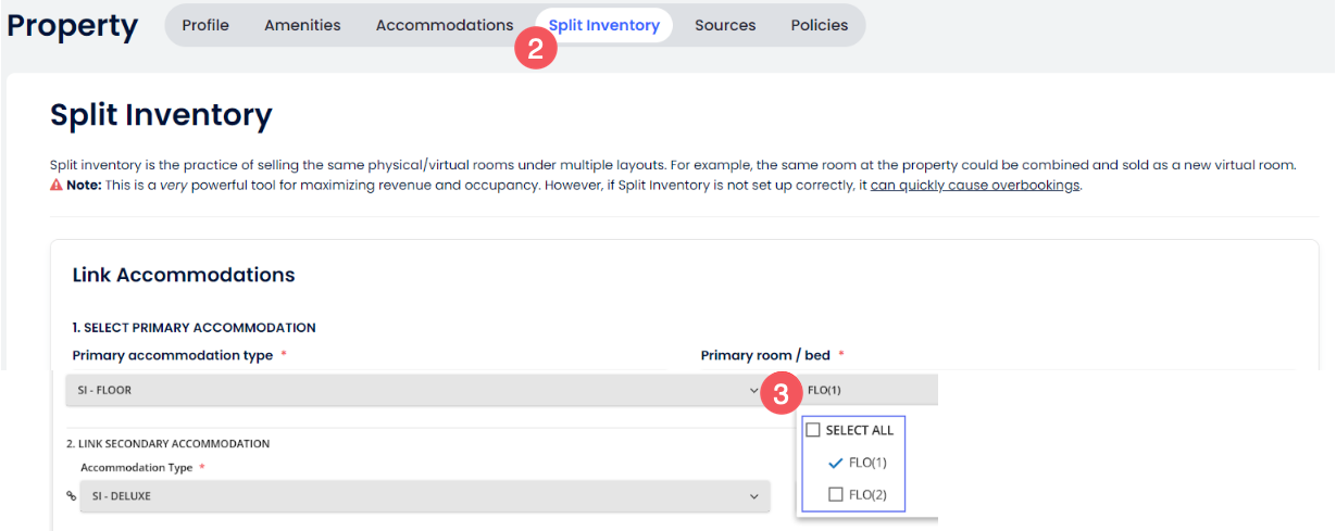 Yeni bir sanal oda tipi oluştur ve bunu Süit olarak ayarla, ardından Envanter Bölme bölümüne git ve