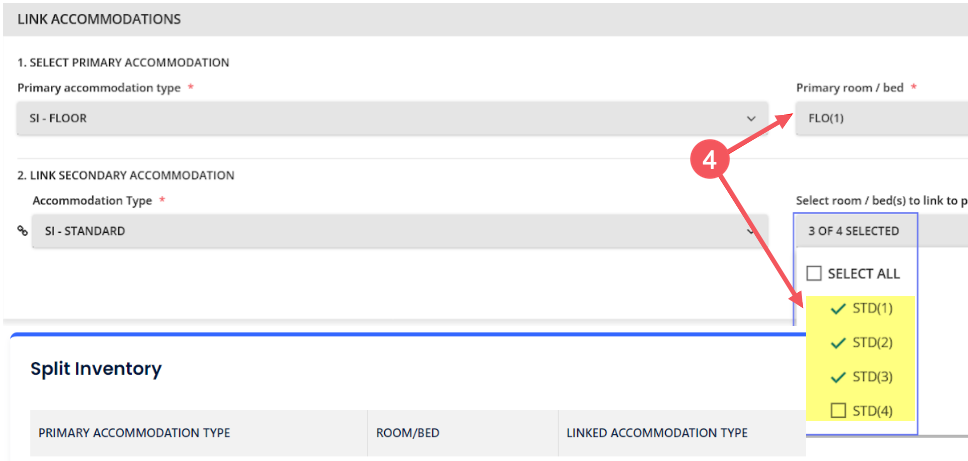 - Standart Oda (4)yı ikincil konaklama olarak bağla.