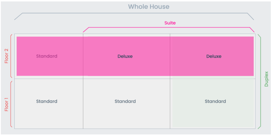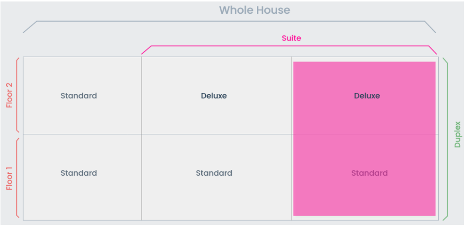 - Süit bir rezervasyon aldığında, tüm Deluxe odalar engellenir ve müsait envanterden kaldırılır.