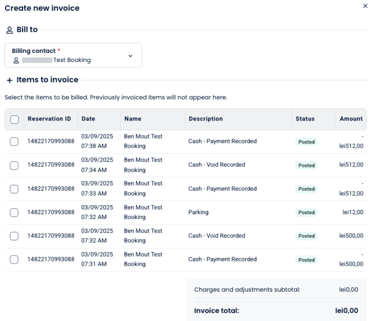Konaklama sonunda, işlendi ücretleri tamamlamak için yeni bir (standart) fatura oluşturmalısın. - Pro Forma Faturada yer alan ücretler, daha sonra standart faturalandırma için tamamen kullanılabilir durumda kalır.