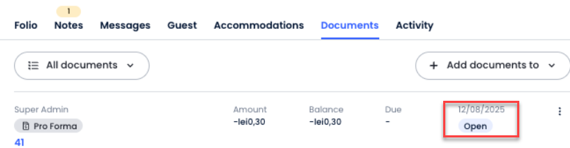 Pro Forma Fatura, bir misafir veya grup için ön fatura oluşturmanı sağlayan yeni bir belge türüdür. Özellikle henüz kesinleşmemiş ücretleri içerecek şekilde tasarlanmıştır.