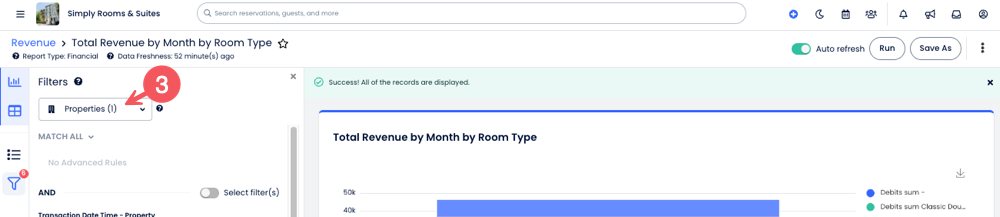 Raporu açmak ve aylara göre oda tipine göre toplam oda gelirini görüntülemek için şu adımları takip et: