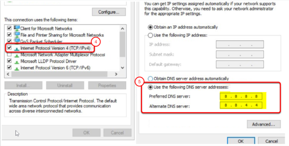 - IPv4 için: 8.8.8.8 ve 8.8.4.4.