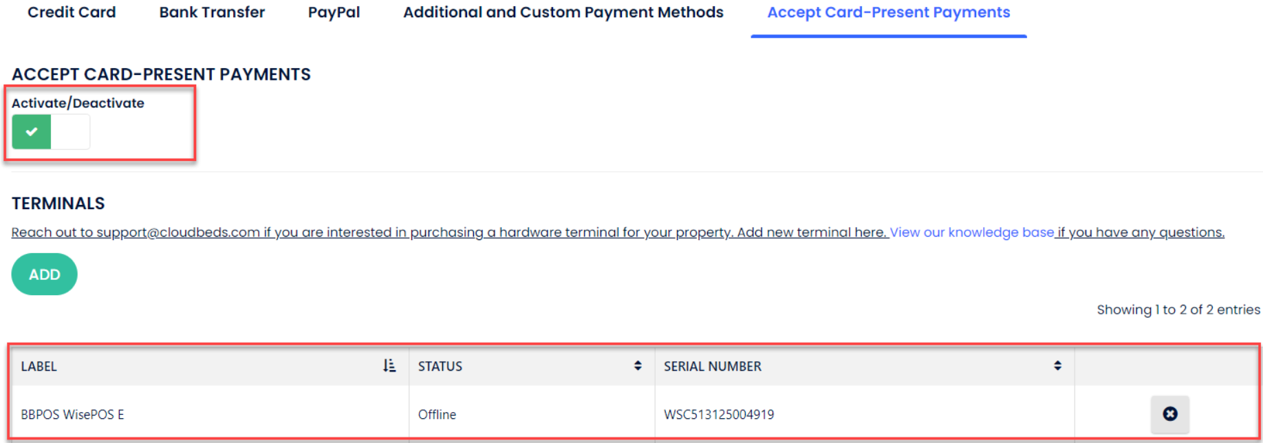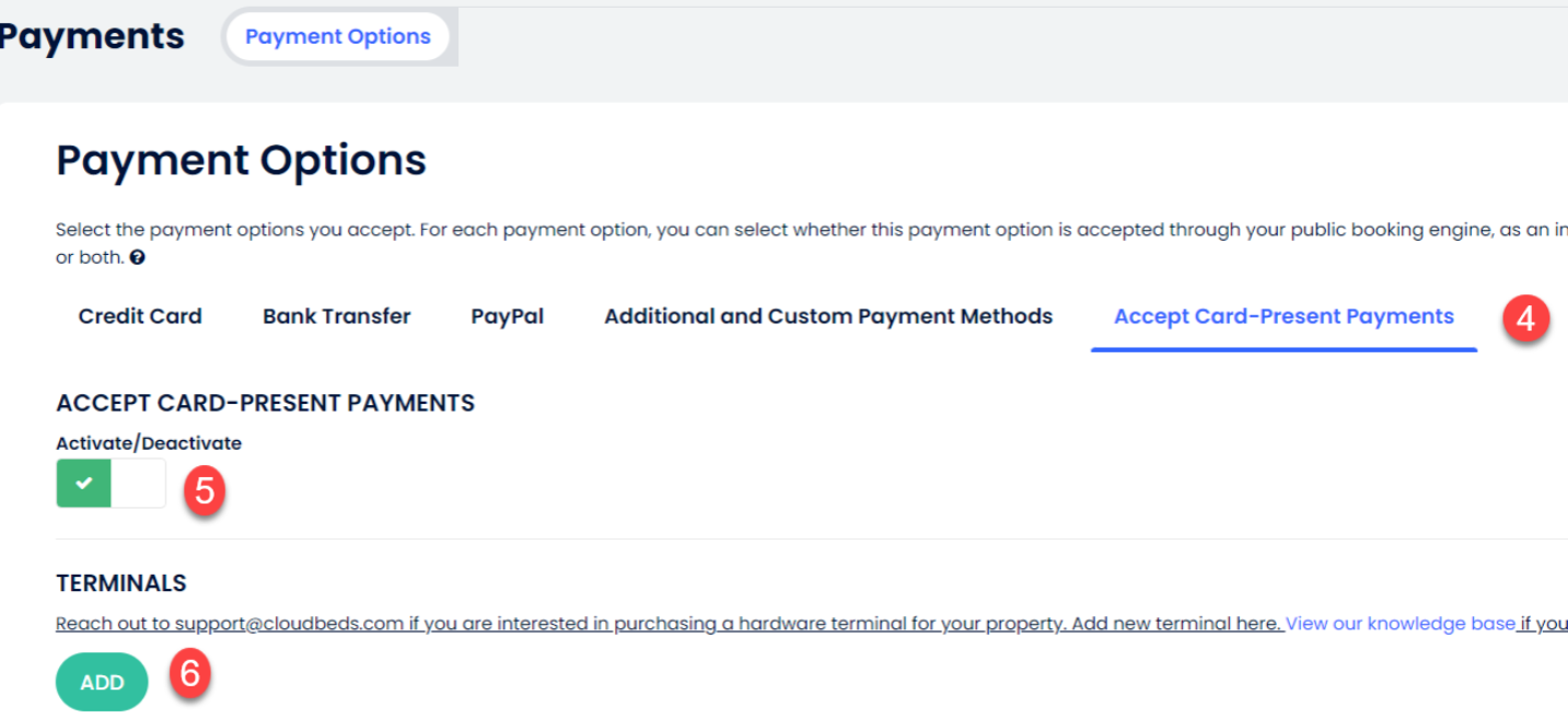 - Terminale sadece Cloudbeds Payments etkinleştirildiğinde bağlanabilirsin.