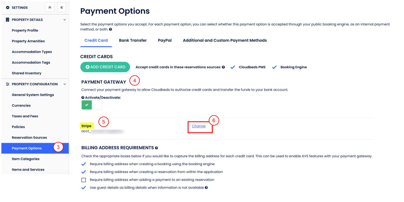 - Ağ geçidine bağlı olarak, bir dizi kimlik bilgisi girmen gerekecek. Daha fazla bilgi edinin:Cloudbeds PMS’de Ödeme İşlemlerinin Nasıl Kurulacağı