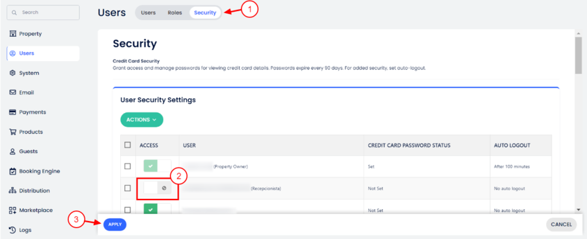 Bu makale, Cloudbeds PMS içinde kredi kartı görüntüleme şifresinin nasıl sıfırlanacağını ve belirli tesis kullanıcıları için nasıl devre dışı bırakılacağını açıklar.