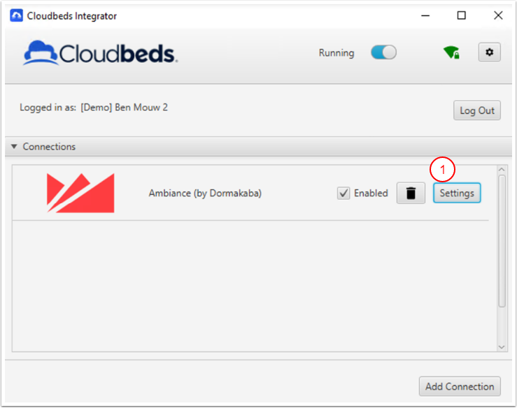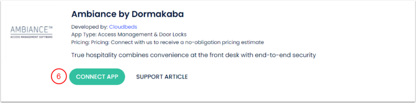 Cloudbeds Entegratör artık Ambiance yazılımına bağlı ve entegrasyonu yapılandırmaya devam edebilirsin.