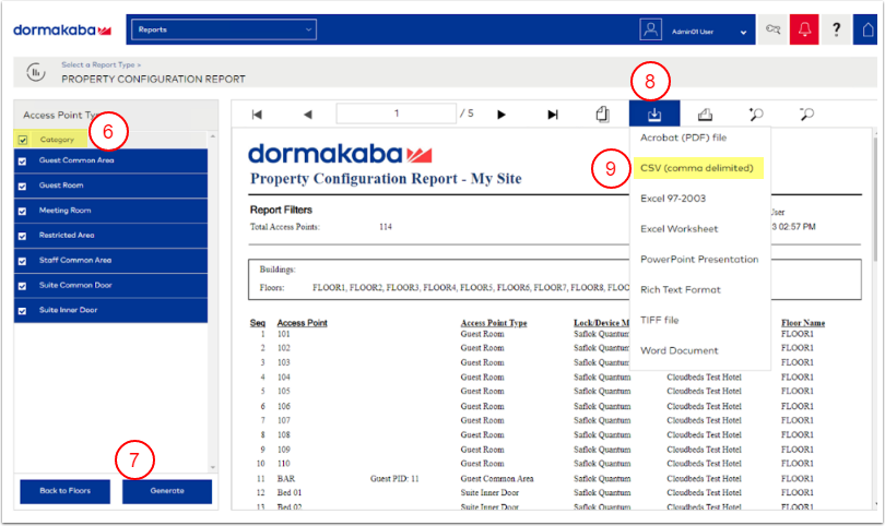 1. Tesisindeki tüm katları kontrol et. Bunu, üst bilgideki Kat kutusunu işaretleyerek yapabilirsin.