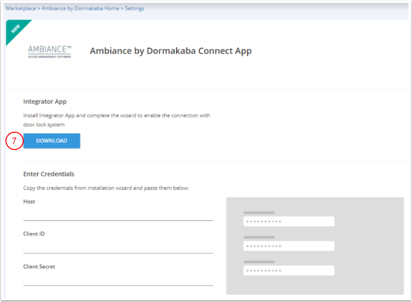 1. Kapı Kilidi Sağlayıcısı olarak Ambiance (Dormakaba tarafından) seç.