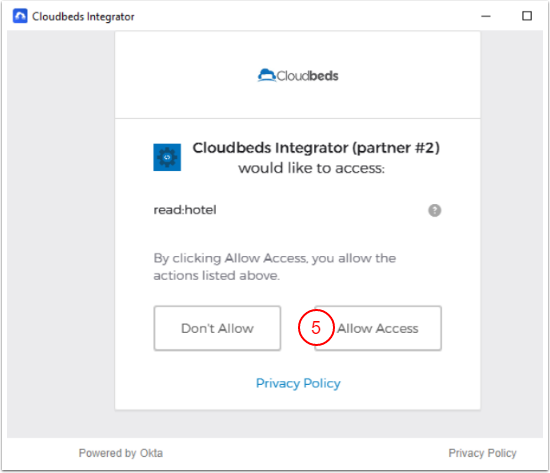 1. Entegratör uygulamasının Cloudbeds’e bağlanması için Erişime İzin Ver
