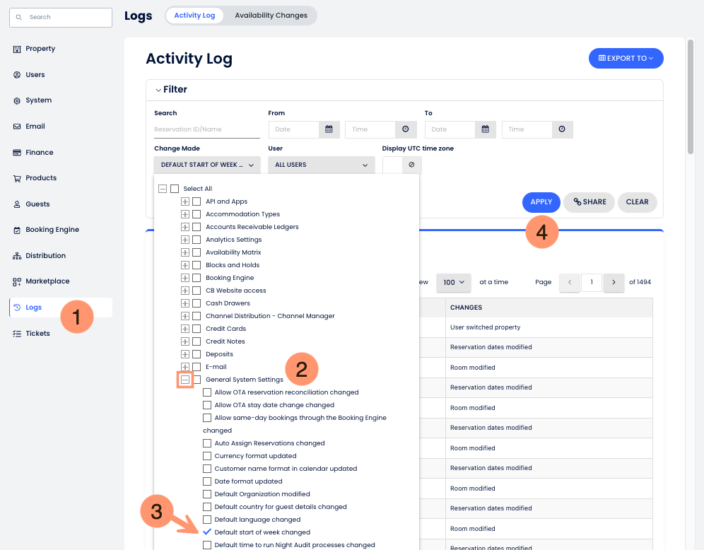 - Değişiklik Yapıldı filtresini aç ve Genel Sistem Ayarlarını genişlet.
