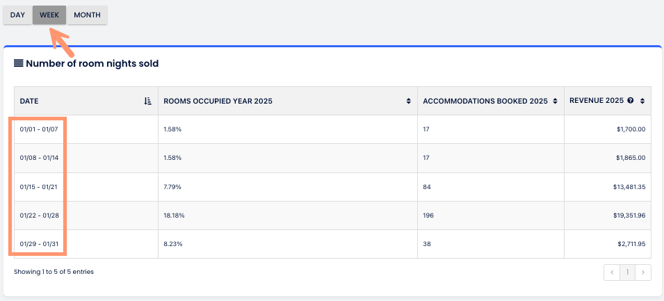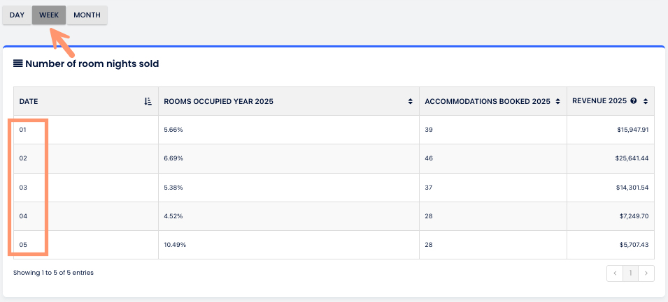 Cloudbeds Insights'in haftanın başlangıcı için kendi ayarı vardır. Bu şu anlama gelir: