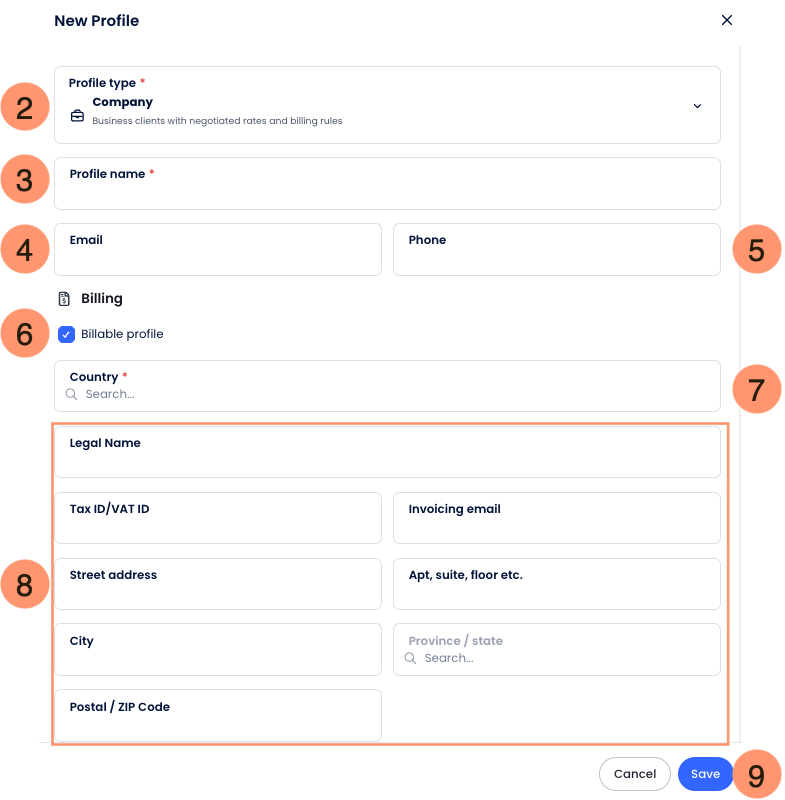 Eğer Faturalandırılabilir profil onay kutusu işaretliyse, Ülke alanı zorunlu olacaktır. - Detaylı Fatura Bilgilerini Gir (İsteğe Bağlı): Yasal Ad, Vergi No, Fatura E-postası ve fiziksel adres bilgilerini doldur.